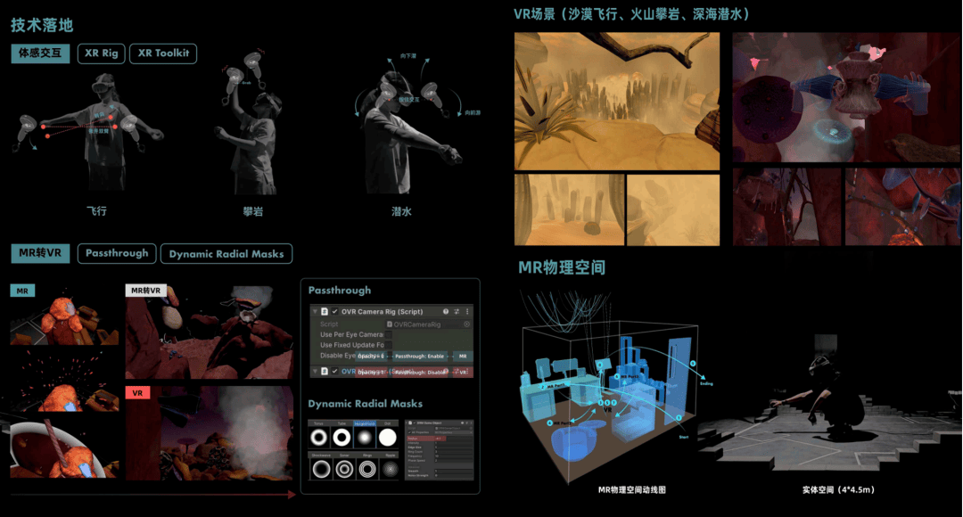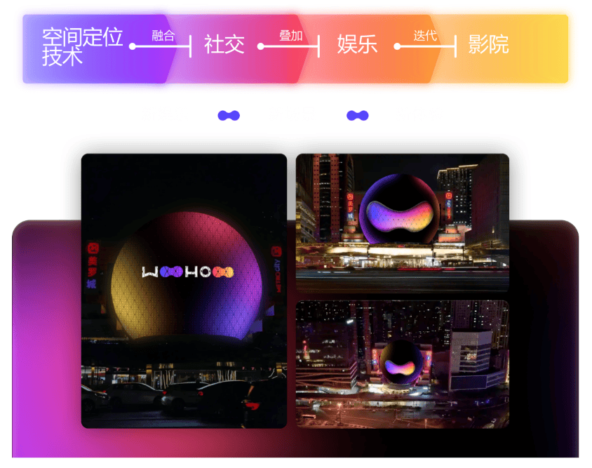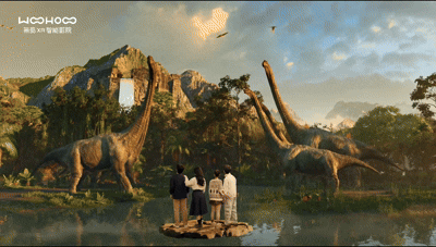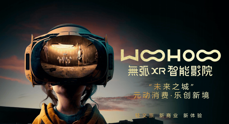 “Woohooo影院” 超越传统观影体验,通过前沿的XR空间计算技术,打造一个允许观众在虚拟世界中自由行走、探索的沉浸式影院。核心创新在于“一厅多片”模式,利用空间算法在同一场地内同时运行多部影片,极大丰富了内容选择性与复购率。
