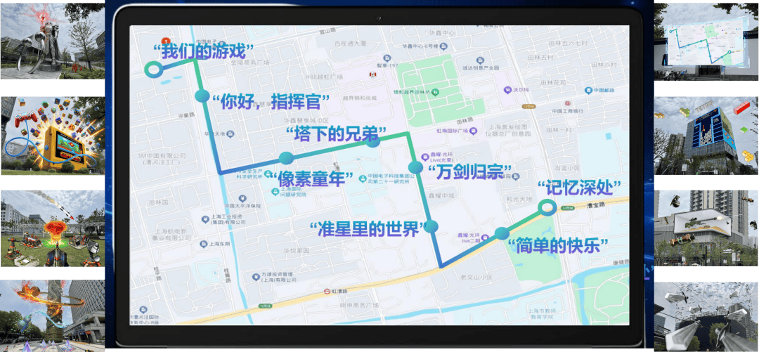 “Memento记忆碎片” 漕河泾元宇宙街区AR探索游戏项目依托漕河泾元宇宙街区地理空间,通过最新AR交互技术打造沉浸式游戏回忆体验。街区内设置8个交互点位,游客可观赏元空间奇景、探寻游戏记忆,集齐点位照片分享朋友圈还能获特别奖励,助力街区推广。